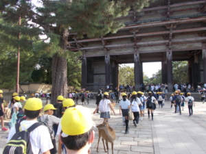 10月8日(水)・9日(木)、6年生が修学旅行で奈良・京都に出かけました。当初の天気予報では曇り時々雨、とのことでしたが、2日とも暑いくらいの晴天で、どこに行っても素晴らしい景色を堪能することができました。