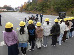 | 12月3日(水)、5年生が長久手市にあるトヨタ博物館に見学に行きました。愛知県の主要産業である自動車製造業。工場見学とはまた違った形で、自動車の歴史、車両の形の変遷などを詳しく知ることができました。創成期の自動車の試運転を見て、現在自分たちが慣れ親しんでいる自動車との違いに驚いていました。 |