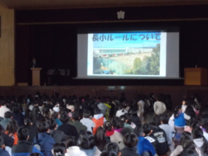 生徒指導主任から、運動場の使い方などに関する「長小ルール」についての確認がありました。 |