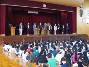 入学式では、新1年生がとても落ち着いていて立派な態度でした。校長式辞では、楽しく小学校生活を送るコツとして「にこにこ わくわく やってみよう!」をキーワードに、「にこにこあいさつをしよう」「わくわく勉強しよう」「やってみよう、という気持ちを大切にしよう」という話をしました。昨年度の1年生たちもこの「にこにこ わくわく やってみよう!」がとても上手にできていましたので、きっと今年度の1年生もできるものと期待しています。 始業式の校長式辞では、今年の学校のスローガンを「つながり~人・とき・こと~」とし、人とのつながり、過去・現在・未来という「とき」のつながり、授業や行事などを含め、さまざまな出来事「こと」のつながりを大切にしよう、という話をしました。担任・教職員の発表のあと、式場にいる全児童、教職員でお互いに「よろしくお願いします」と大きな声で挨拶しました。体育館には児童たちの元気な声が響きわたっていました。 元気で素直な「長っ子」たちが毎日安心して通える学校、そして「今日も楽しかったな」「明日も学校に行きたいな」と思える学校でありたいと思います。今年度も皆様に応援・お支えいただける長久手小学校であるよう、教職員一同児童たちの笑顔のために力を合わせてまいります。 |